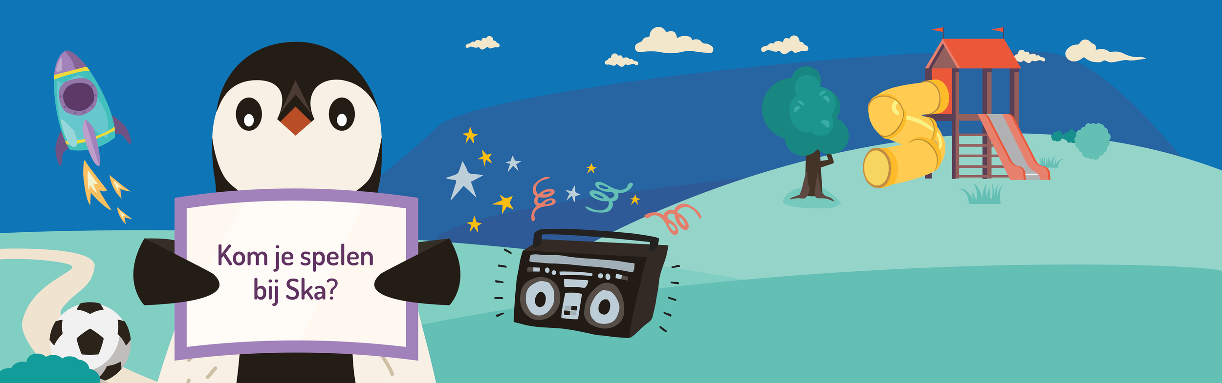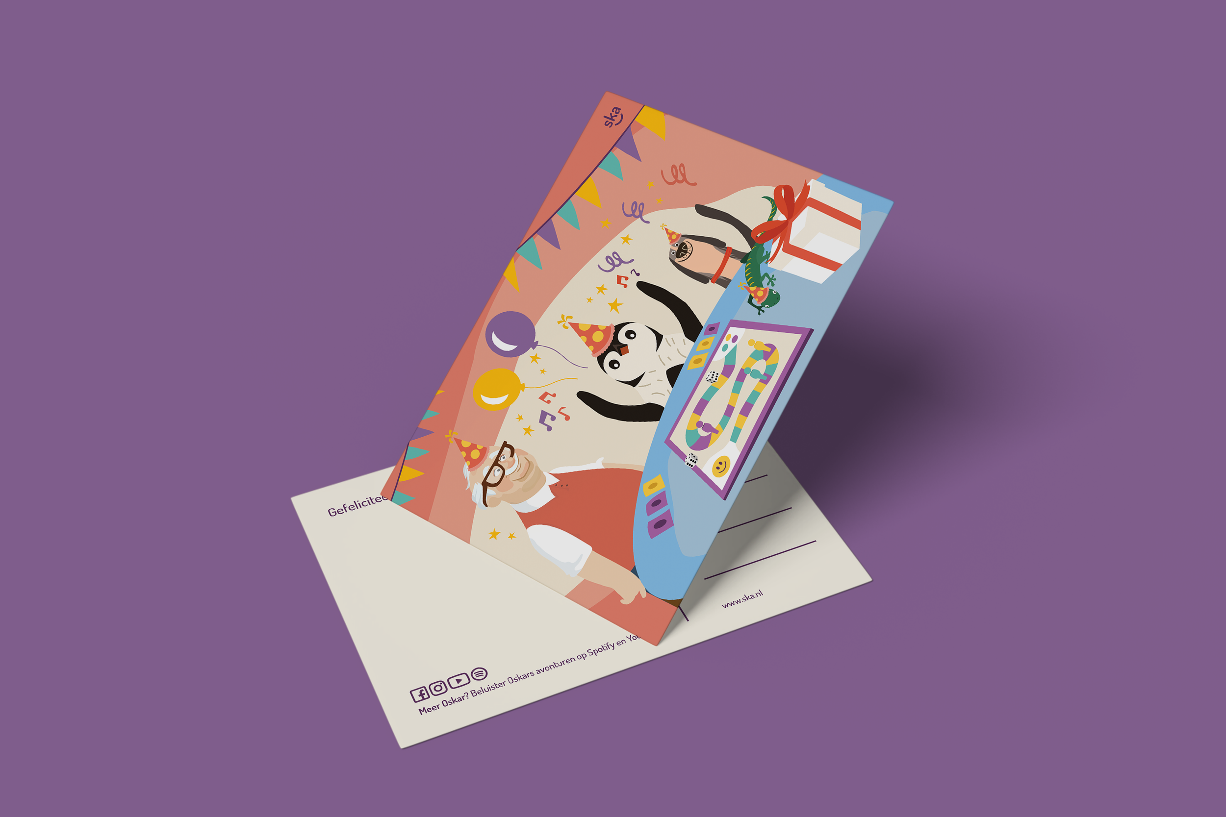 At FLIRT I created multiple illustrations for SKA. Aside from being a daycare, SKA also produces audiobooks that follow the story of their Mascotte Oskar the penguin. This series is called “Oskar’s adventures”. Oskar is a curious penguin from outer space who decided to go to school on earth. This series is about the intergalactic penguin’s experience at school and how he makes new friends. I created illustrations for the YouTube channel, social media platforms and for print.